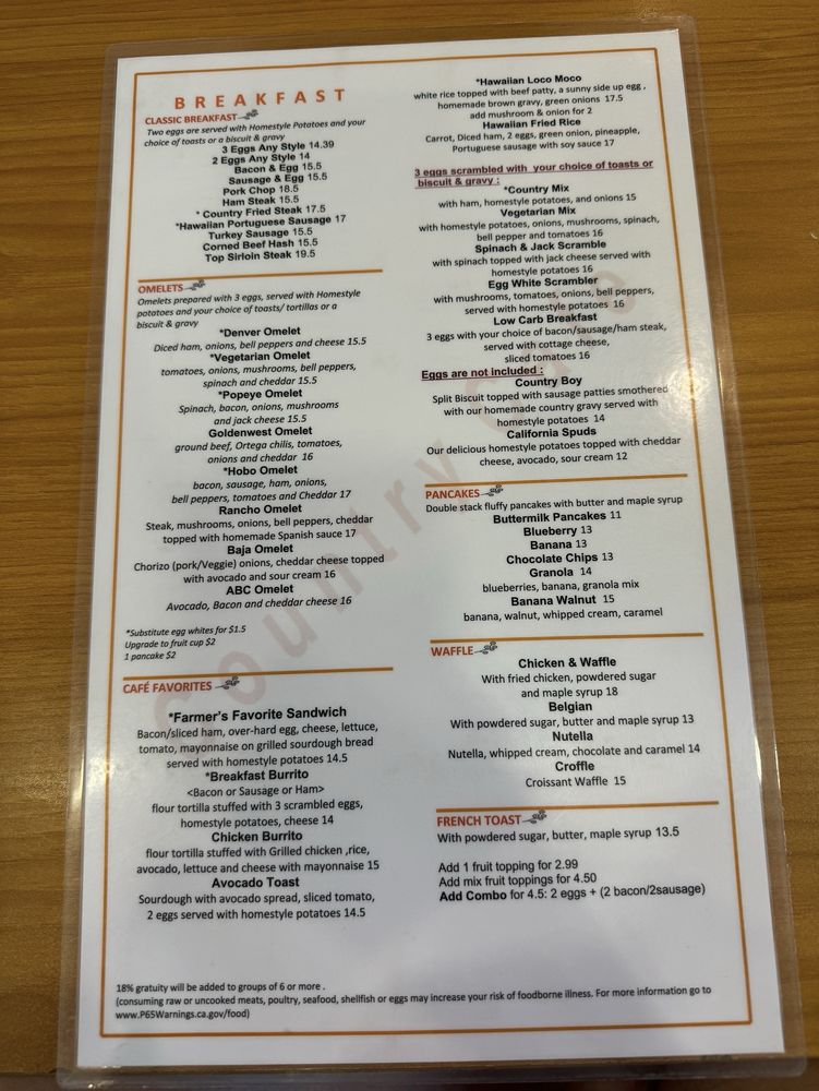 Welcome to Country Cafe, a hidden gem in Santa Ana offering a fusion of American comfort food with Mexican and Hawaiian influences. Located at 2321 E 4th St Ste A, this Latinx-owned and women-owned establishment provides a casual and welcoming atmosphere perfect for breakfast, brunch, or lunch. The menu features a variety of options, including vegan and limited vegetarian choices, ensuring there is something for everyone. Customers rave about dishes like the Breakfast Burrito, Hawaiian Portuguese Sausage Fried Rice, Classic Benedict's, and Green Chilaquiles. With attentive service, good food quality, and affordable prices, Country Cafe is a must-visit spot in Tustin. Whether you're looking for a quick bite or a leisurely meal, this restaurant offers a diverse selection of delicious dishes that will leave you wanting to come back for more.